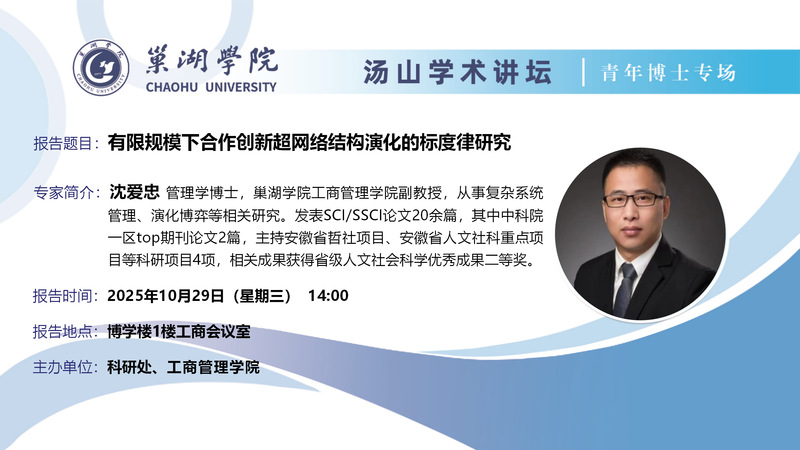 • 湯山學(xué)術(shù)講壇青年博士專(zhuān)場(chǎng)第24講:(10月29日:工商管理學(xué)院沈愛(ài)忠博士講座)