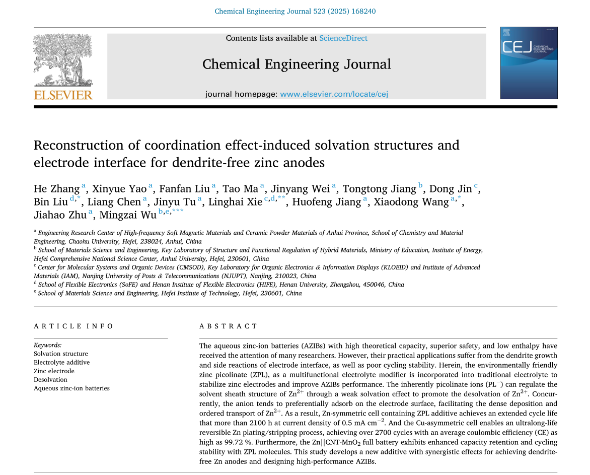 巢湖學(xué)院化學(xué)與材料工程學(xué)院新能源材料與器件科研創(chuàng)新團(tuán)隊(duì)張賀博士在國(guó)際權(quán)威...
